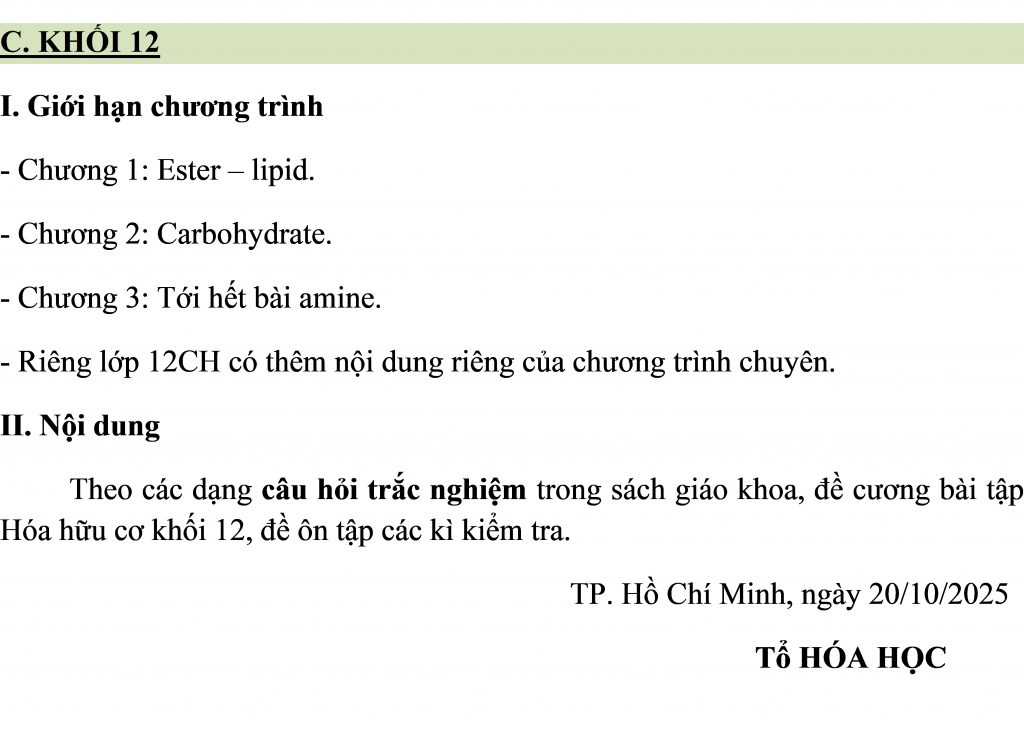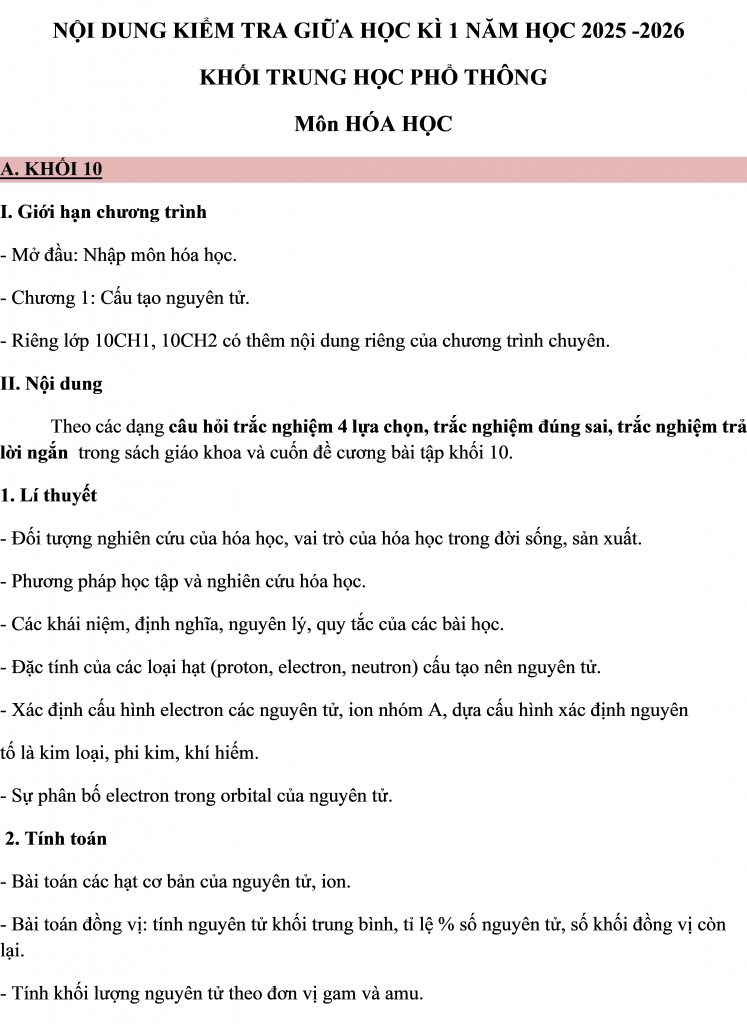 KHỐI TRUNG HỌC PHỔ THÔNG Môn HÓA HỌC