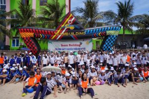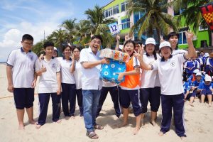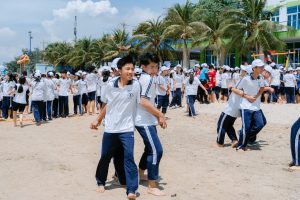 Rời khu lưu niệm trong niềm xúc động và tự hào, các em học sinh di chuyển đến Khu nghỉ dưỡng Đoàn 298 để bước vào phần hoạt động đầy năng lượng: chương trình Team Building trên biển với chủ đề “WE TOGETHER – WE WIN”. Không khí trang nghiêm được thay thế bằng sự năng động, nhiệt huyết và những tiếng cười giòn tan. Thông qua các trò chơi đòi hỏi sự phối hợp nhịp nhàng, khả năng giao tiếp, và tư duy giải quyết vấn đề, các em đã được thực hành những kỹ năng quan trọng của môn Hoạt động trải nghiệm – Hướng nghiệp. Hơn thế nữa, đây là cơ hội tuyệt vời để phá bỏ khoảng cách, xây dựng sự tin tưởng và thấu hiểu lẫn nhau, đúng với tinh thần “Cùng nhau chúng ta sẽ chiến thắng”.