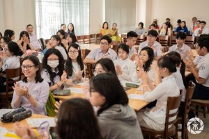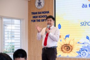 Thời gian cuối là phần chia sẻ của cô Triệu Phạm Trà Mi – Tổ trưởng tổ Hoạt động trải nghiệm – Hướng nghiệp và Giáo dục địa phương và phần phát biểu chỉ đạo của thầy Phạm Thanh Yên – Phó Bí thư Chi bộ, Phó Hiệu trưởng nhà trường. Cô Triệu Phạm Trà Mi đã có những chia sẻ sâu sắc về quá trình chuẩn bị  và những mục tiêu của chủ đề “Văn học hiện đại của Thành phố Hồ Chí Minh. Thầy Phạm Thanh Yên nhấn mạnh tầm quan trọng của bộ môn Giáo dục địa phương trong quá trình hình thành năng lực, phẩm chất cho học sinh và định hướng một số phương pháp dạy học ứng dụng công nghệ thông tin cho bộ môn này.