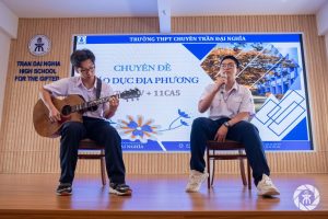 Học sinh lớp 11CA5 ngẫu hứng trình bày ca khúc “Thành phố của tôi” – một sáng tác của nhạc sĩ Phan Nhân.